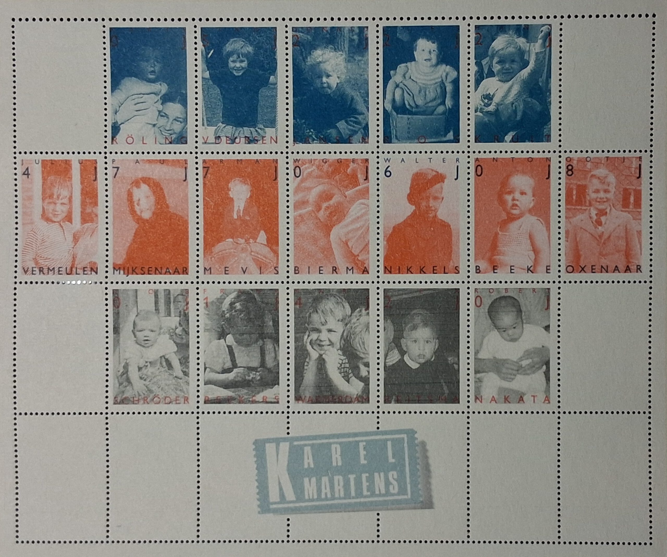 1988 entwarf Martens die Kinderbriefmarken (kind en water, siehe NVPH-Nr. 1415 – 1417). Das abgebildete Werk ist ein Ausschnitt aus einem DIN A2 großen Plakat mit der Überschrift “Nederlandse Postzegelontwerpen 1989” und ist an das PTT Museum in ‘sGravenhage gerichtet. Die Marken sind gezähnt und im Steindruck produziert.